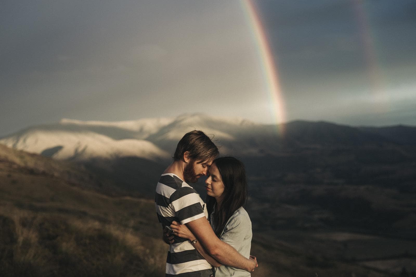 在如此宏大的自然面前,两人之间的亲密感反而显得更加珍贵.无论是那个安静的鼻尖相触,还是在山脊上的深情相拥,Yi&Siyu眼里的爱意让这片荒野变得温暖起来.这就是我最喜欢的画面——世界很大,而我们彼此依靠.
